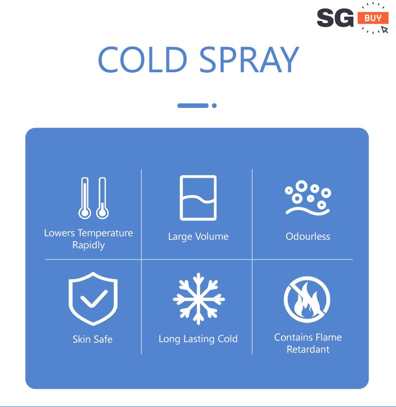 Sports Cold Spray helps relieve pain immediately. Cold Spray on the injured or inflamed areas helps cool the site of damage reducing inflammation and relieving pain immediately This Spray does not contain any propellants and is handy to use. To use: spray onto areas of skin to be treated from a distance of about 20cm until a fine white film is produced DO NOT continue to spray to avoid skin burning.
