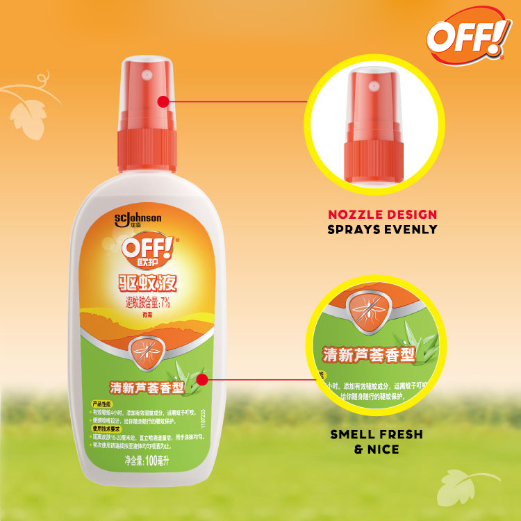 OFF! 100ml Travel Sized Portable Mosquito Repellent Spray Insect Spray Aloe Vera Scent