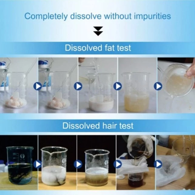 Dissolve Human Hair & waste, toilet paper, kitchen waste, Fats, etc.