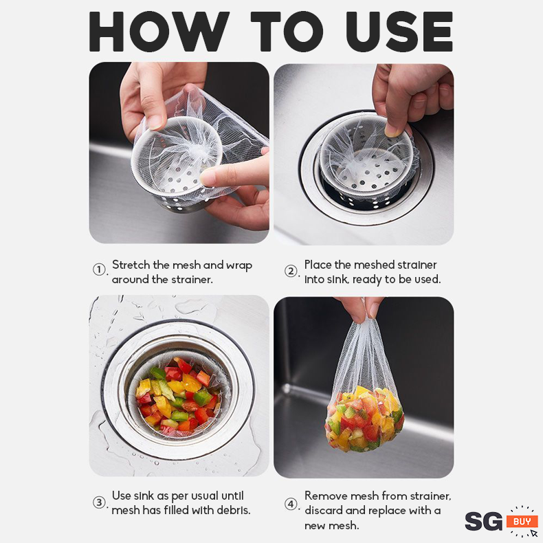 [SG Stock] 100pcs Kitchen Sink Net Filter Sink Basket Bag Drain Strainer Filter Net Prevent Clogs