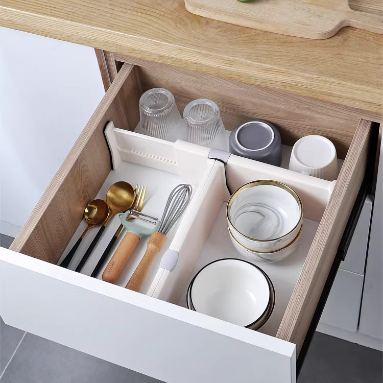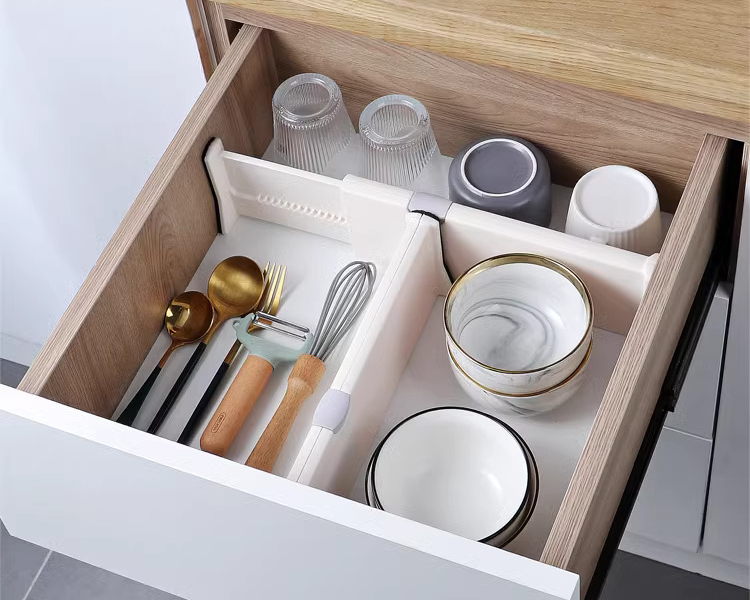 Simple to use and very practical gadget for separating kitchen utensils, cutlery, underwear or even paperwork in any drawer.